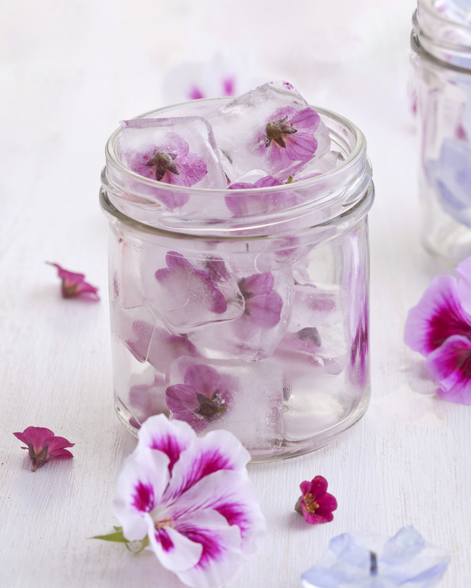 Plocka ätbara blommor från trädgården och frys in i iskuber till sommarfesten. Dina blommiga isbitar blir fina i både välkomstbålen och i glasen. Här är några sorter du kan använda om de är ekologiska!