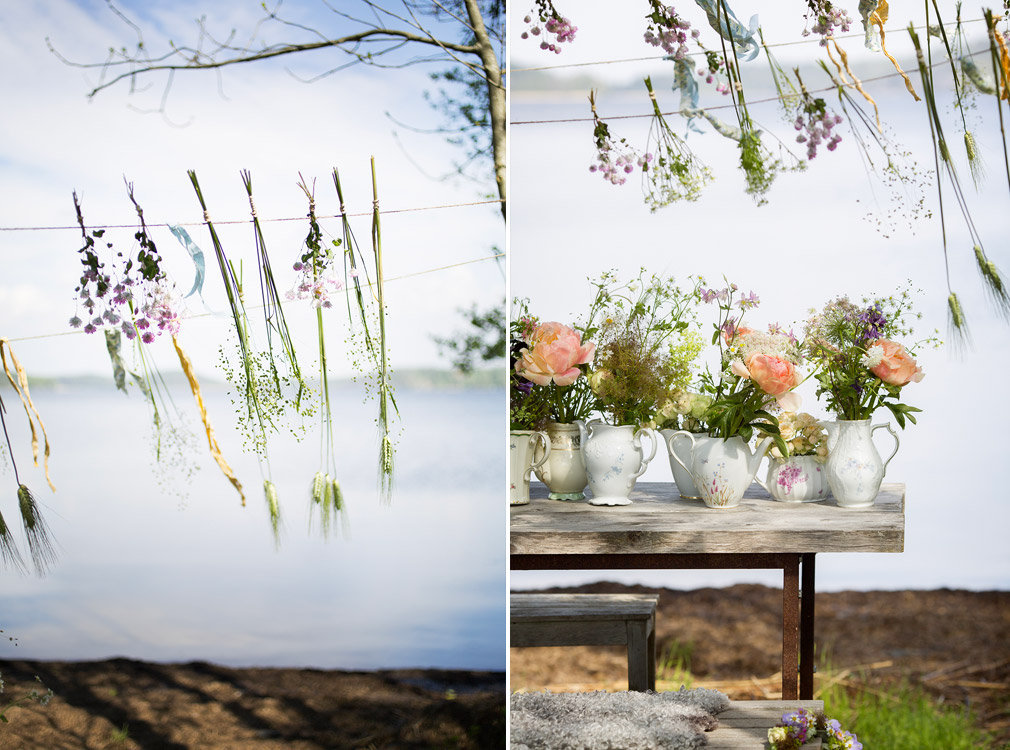 – Just kaffekannor i porslin används ju inte längre och det finns kopiösa mängder av dem på loppisar. De är jättefina som vaser. Ett hopplock blir mysigt och förhöjer midsommarkänslan, säger Charlotte.